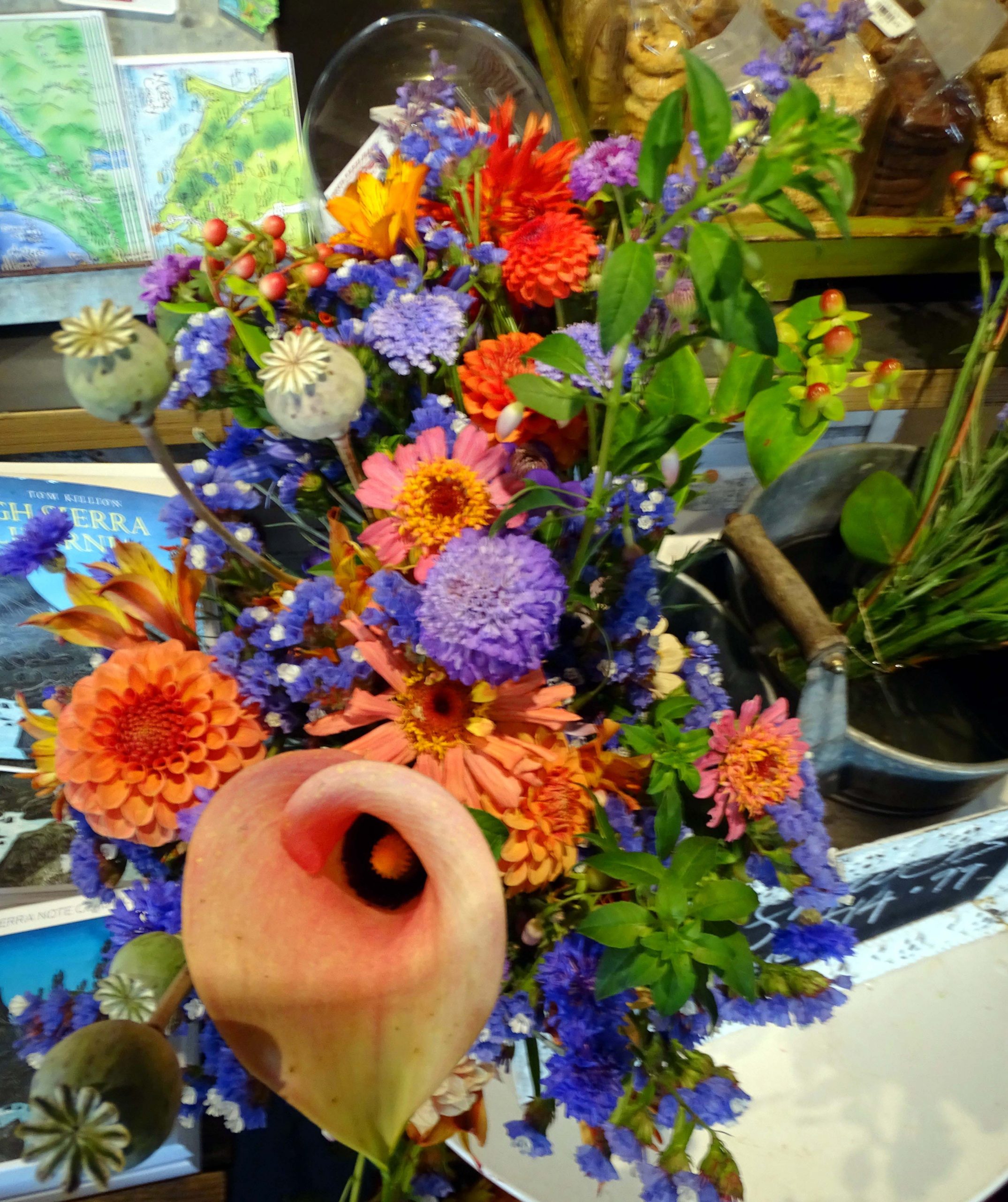 We spent all day meandering up the windy, spectacular coast to Mendocino. Following Geri’s directions (our friend formally from Hawaii) down the wooded lane, past the field of horses and through the maroon gate we reached her little piece of heaven in the hills above Mendocino. The cool night allowed for a welcome and wonderful fire in her fireplace, one of the best gifts she could have given to these tropical woosies. The next day we explored the area including the impressive Botanical Gardens, we hiked the coast and the Russian Gorge, perused a local Artisan’s Fair and the Health Food Store in an old church. Being gardeners at heart enjoyed the peace and serenity of her little cottage garden.