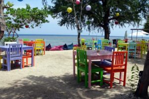 On the way out of town along a flat quiet beach is the Green Lemon. Not a hyped up tourist place, just a simple warung but right on the beach.