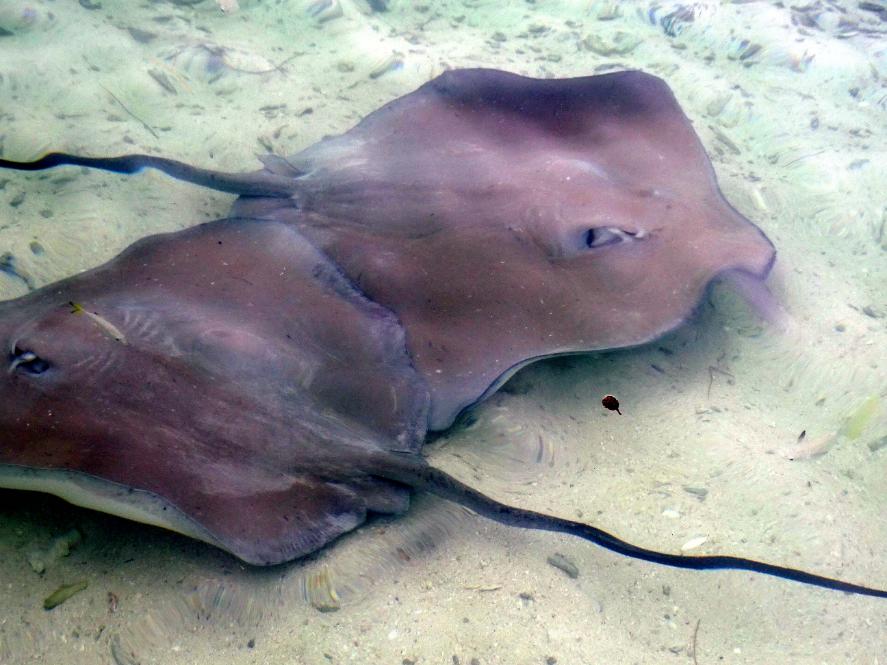 Our B&B had kayaks for guests to use, so we set off for a long paddle around our end of the island. We would just roll over the side and snorkel in whatever serene lagoon looked inviting. Fish of every description awaited us in the world below. Tired but exhilarated, we arrived back at our bungalow on the beach. When lifting the bulky kayak up onto shore, it slipped out of my hands and the heavy end slid down my shin, peeling the skin off like peeling an apple. Luckily, we weren’t in the bay with the sharks!