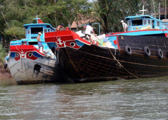 The River of Nine Dragons, or Mekong, is one of the world’s mighty rivers. Unaware, we have followed this mighty river from it’s origin high in the Tibetan Plateau eight months ago, down into China, across Laos, and now the full length of Vietnam. The sandalwood bracelet given to me by a monk in the Tibetan Himalayas is almost worn through, just as we feel some days, but the anticipation of what lies around the next corner spurs us on. We remind ourselves that it is this passion in life that makes the difference. And so we eagerly continue. Twenty six hundred miles from its origin we followed the river down to the southernmost tip of Vietnam, the Mekong Delta. This rich fertile delta is fed from soil washed from the high plateaus and all points in between. Fifty thousand people depend on this river for their livelihood in Vietnam alone and with multiple dams being built in China, the environmental impact will surely be felt downstream.
