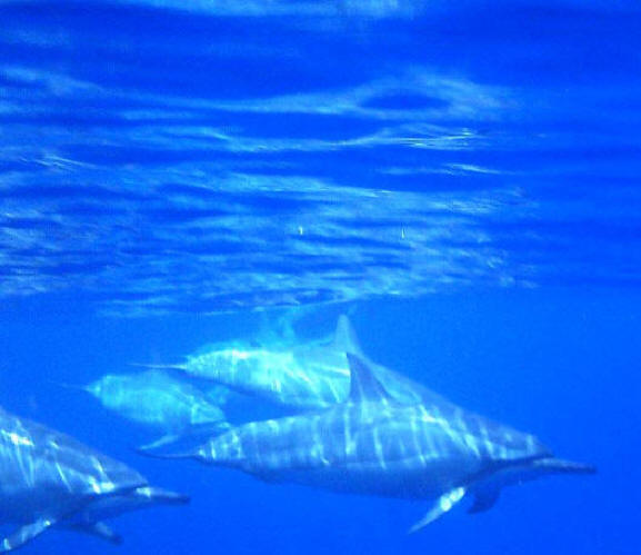 When living in Hawaii it is common to have incredible experiences outdoors and with creatures of the ocean. Daughter Mariah, also at one with the ocean, went out with myself, Kayla and our friend Star to swim with dolphins. At 9 months pregnant it was a fun experience as the dolphins, attracted by the double heart beat, came close for a good look at Mom to Be and no doubt have a talk with Kaimana, floating just a couple feet away. The swell was starting to rise but we were caught in yet another other worldly Hawaiian moment. On the way back into shore I will never forget a wave crashing on the rocks, splashing 4 stories high, and as the water receded the boat was momentarily perched precariously on the edge of the next 4 story high wave looking down to the rocks below. We were in suspended animation as the Universe decided our fate. Our clever captain floored it and rode the wave across towards the harbor entrance and soon we were snuggled into the safe little cove, still buzzing with excitement.